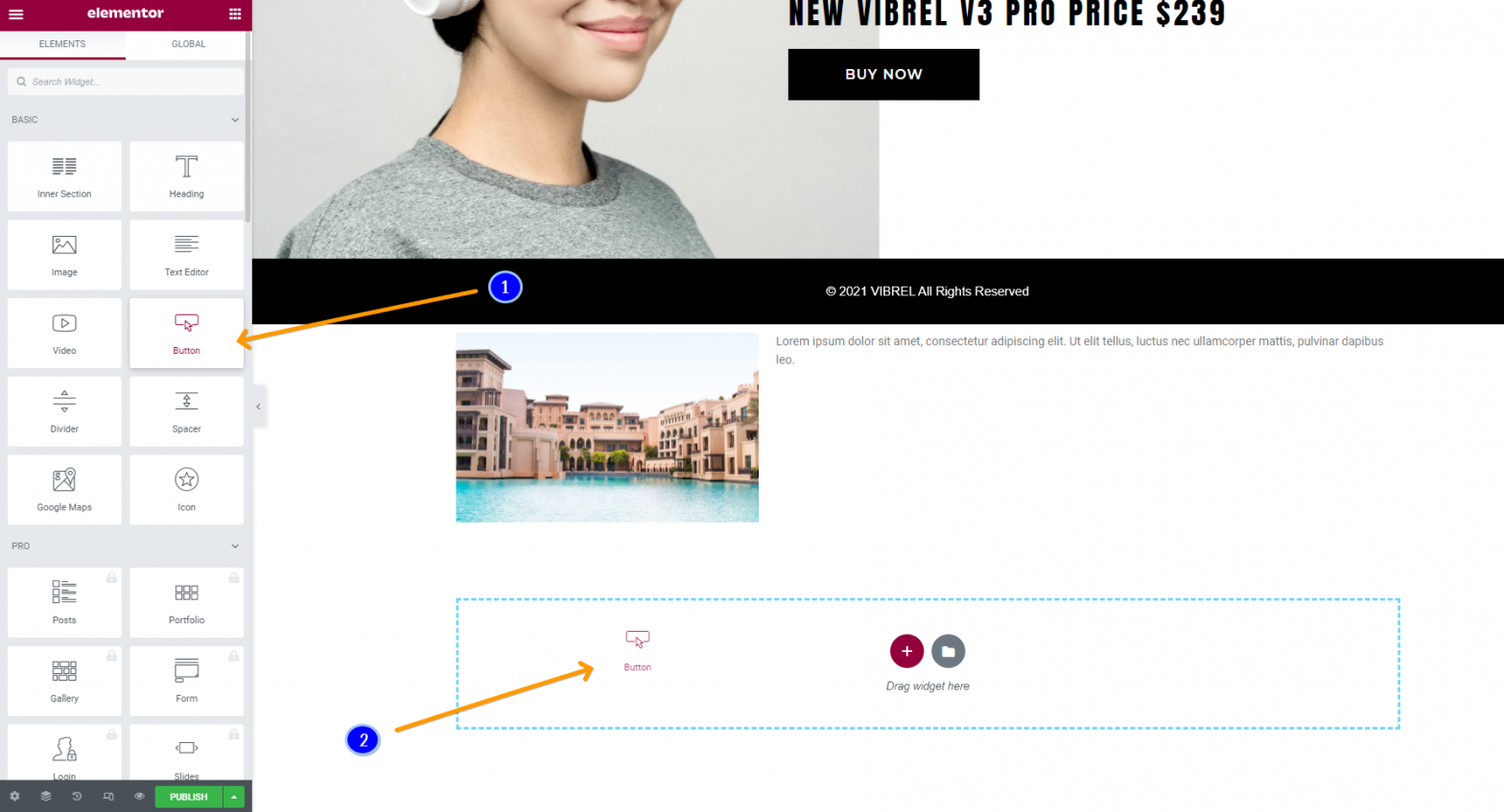 Elementor gir enorme muligheter for å designe nettstedet, ved å dra og slippe widgets på siden, og fylle disse med innhold.